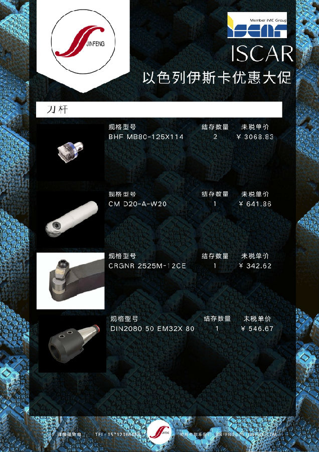 | ISCAR | 刀杆 | BHF MB80-125X114 | PC | 2 | 3068.83 |